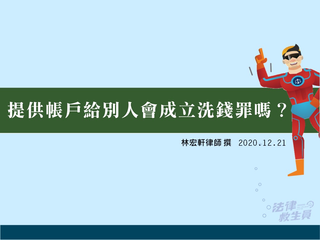 - 不過,帳戶提供者,看到他人不以自己名義申請帳戶,反而收購提供者之帳戶,並要求提供提款卡及密碼,則提供者主觀上如認識該帳戶可能被拿去收受、提領提領犯罪所得,仍可成立洗錢罪之幫助犯。