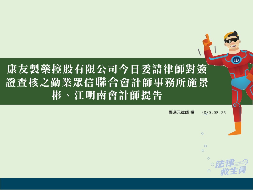 施景彬會計師、江明南會計師均係勤業眾信聯合會計師事務所(下稱勤業眾信)會計師,施景彬復為勤業眾信審計部營運長,係勤業眾信之第二把交椅,亦為總裁熱門人選。施景彬、江明南二會計師並且負責多起KY股簽證、查核、內部控制制度審查工作,對KY公司、第一類上市公司之簽證、查核、內部控制審查之要求,知之甚詳。施景彬會計師自2011年起,即已受康友製藥控股有限公司(下稱康友公司)委託進行簽證與查核,並自2015年起,改與江明南會計師共同受康友公司委任為財務報表之簽證與查核。