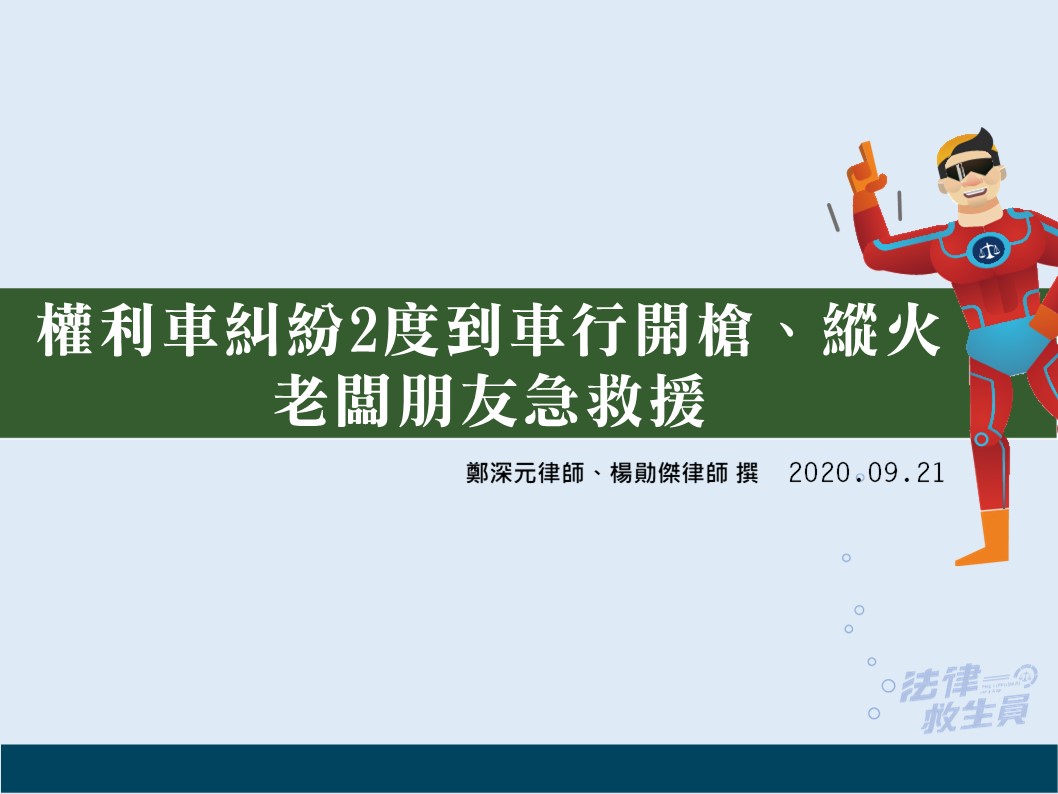 109年9月18日新聞報載劉姓男子在張姓男子之介紹,向梁姓男子購買權利車。購買後產生買賣糾紛,因此劉姓男子偕同林姓友人,前往張姓男子於台中市經營之汽車維修廠與賣家梁姓男子談判,協商未果,劉姓男子持槍恐嚇張、梁二人。